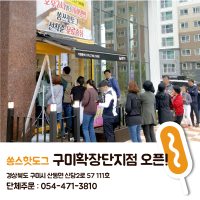 깐깐한 발효반죽, 건강한 수제간식 ‘쏭스핫도그‘ 맛보러 구미확장단지점을 찾아주세요^^