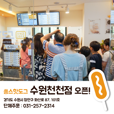 천천동의 새로운 맛집으로! 동네의 사랑방으로! 자리잡을 쏭스핫도그 수원천천점!