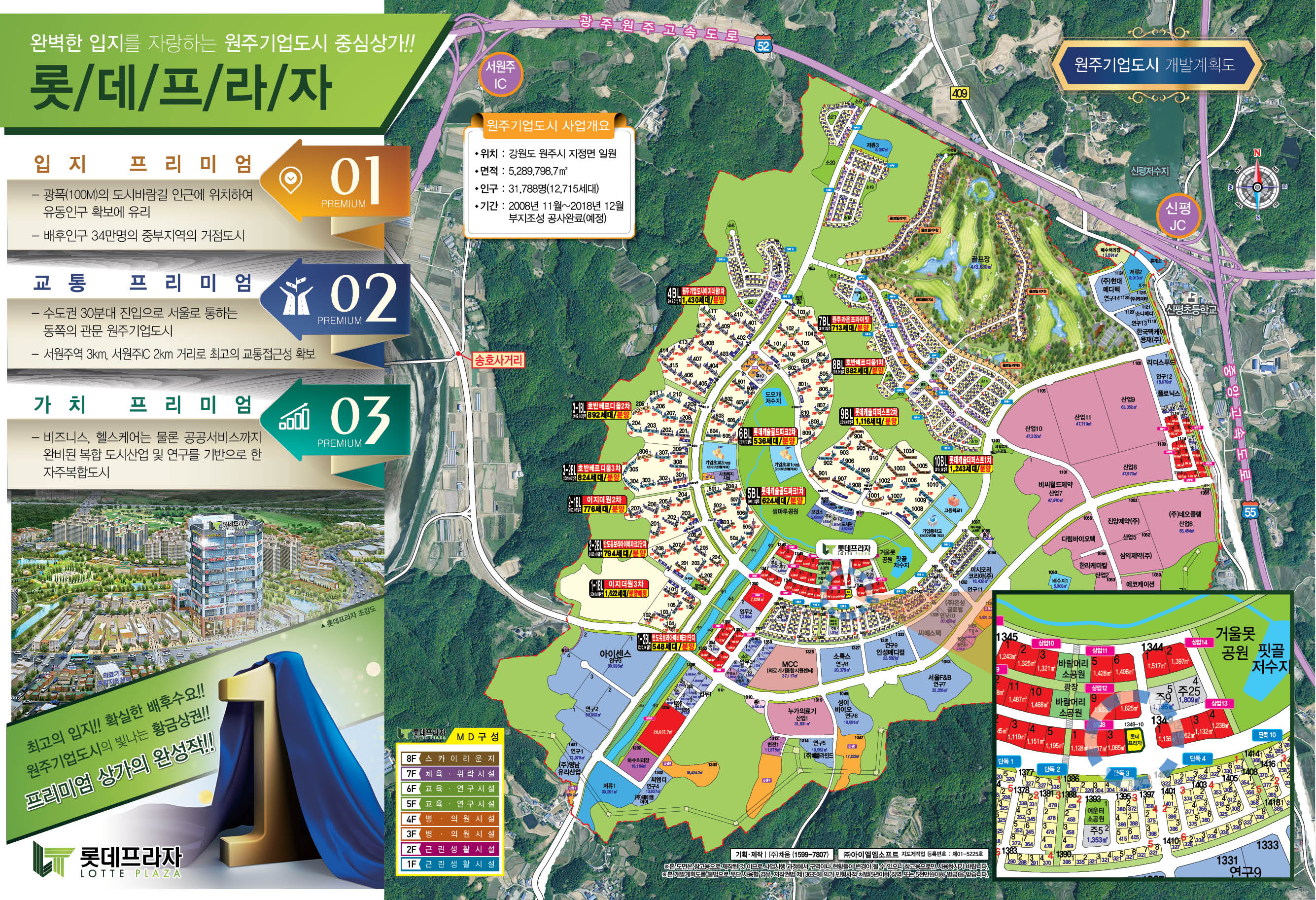 원주기업도시 아파트 대단지 중심의 중심상업지 대로변 3면 코너위치